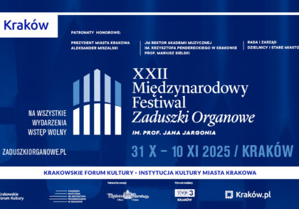 Krakowskie Forum Kultury i Akademia Muzyczna im. Krzysztofa Pendereckiego w Krakowie zapraszają na XXII Międzynarodowy Festiwal „Zaduszki Organowe” im. prof. Jana Jargonia.