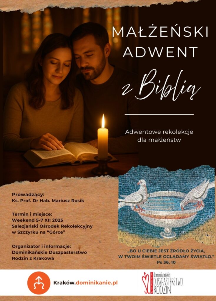 Dominikańskie Duszpasterstwo Rodzin zaprasza na rekolekcje adwentowe “Małżeński Adwent z Biblią”.