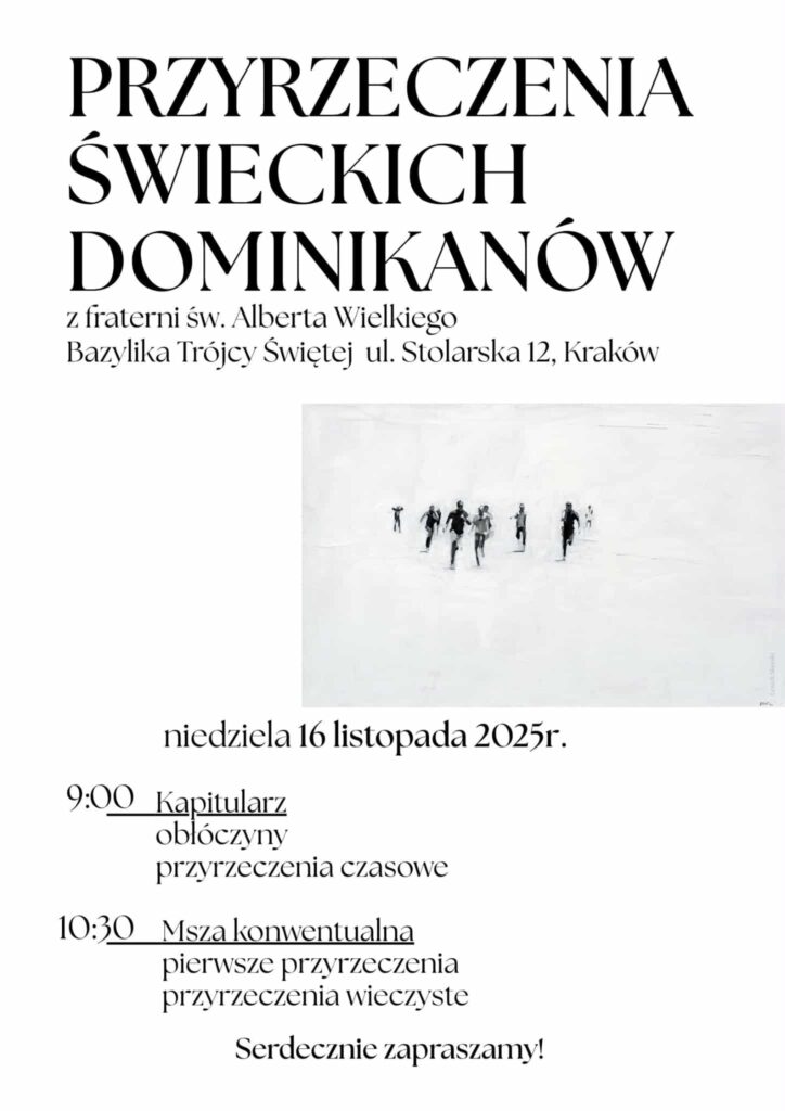 W niedzielę 16 listopada, podczas Mszy św. konwentualnej o godzinie 10.30, świeccy dominikanie z istniejącej przy naszym klasztorze Fraterni św. Alberta Wielkiego złożą swoje przyrzeczenia.