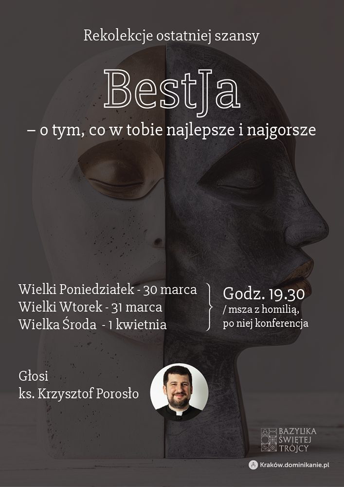 Zapraszamy w Wielkim Tygodniu na rekolekcje ostatniej szansy w dniach 30 marca – 1 kwietnia zatytułowane: “BestJa – o tym, co w tobie najlepsze i najgorsze”