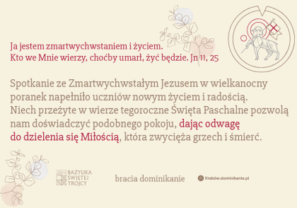 Niech przeżyte w wierze tegoroczne Święta Paschalne pozwolą nam doświadczyć podobnego pokoju, dając odwagę